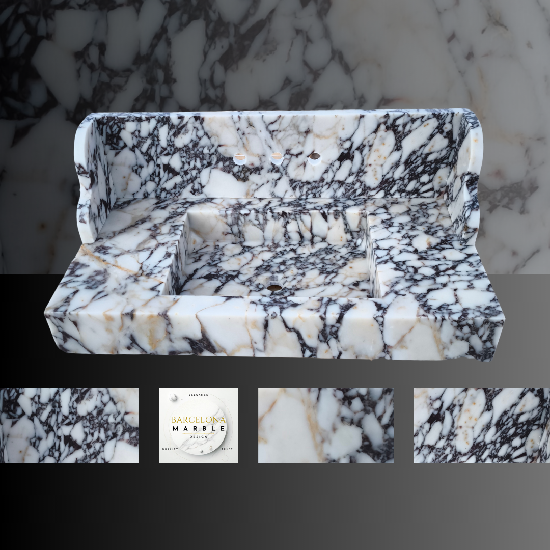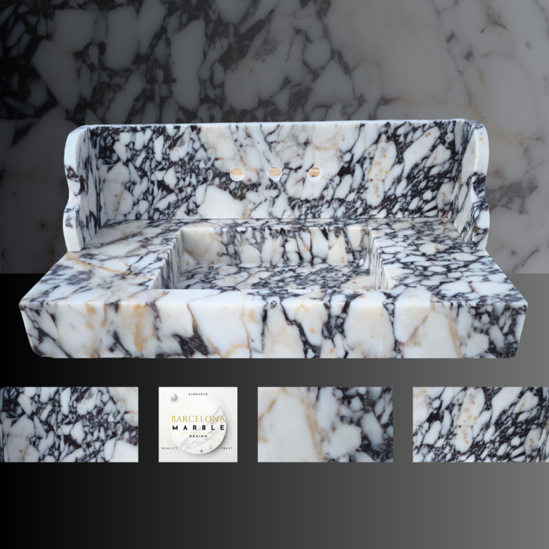 Elevate your bathroom with the exquisite beauty of our Calacatta Viola Marble Sink, a handcrafted masterpiece by Barcelona Marble Design. Made from 100% natural stone, this luxurious sink showcases the distinctive veining and rich hues of Calacatta Viola marble, adding elegance and sophistication to any space.