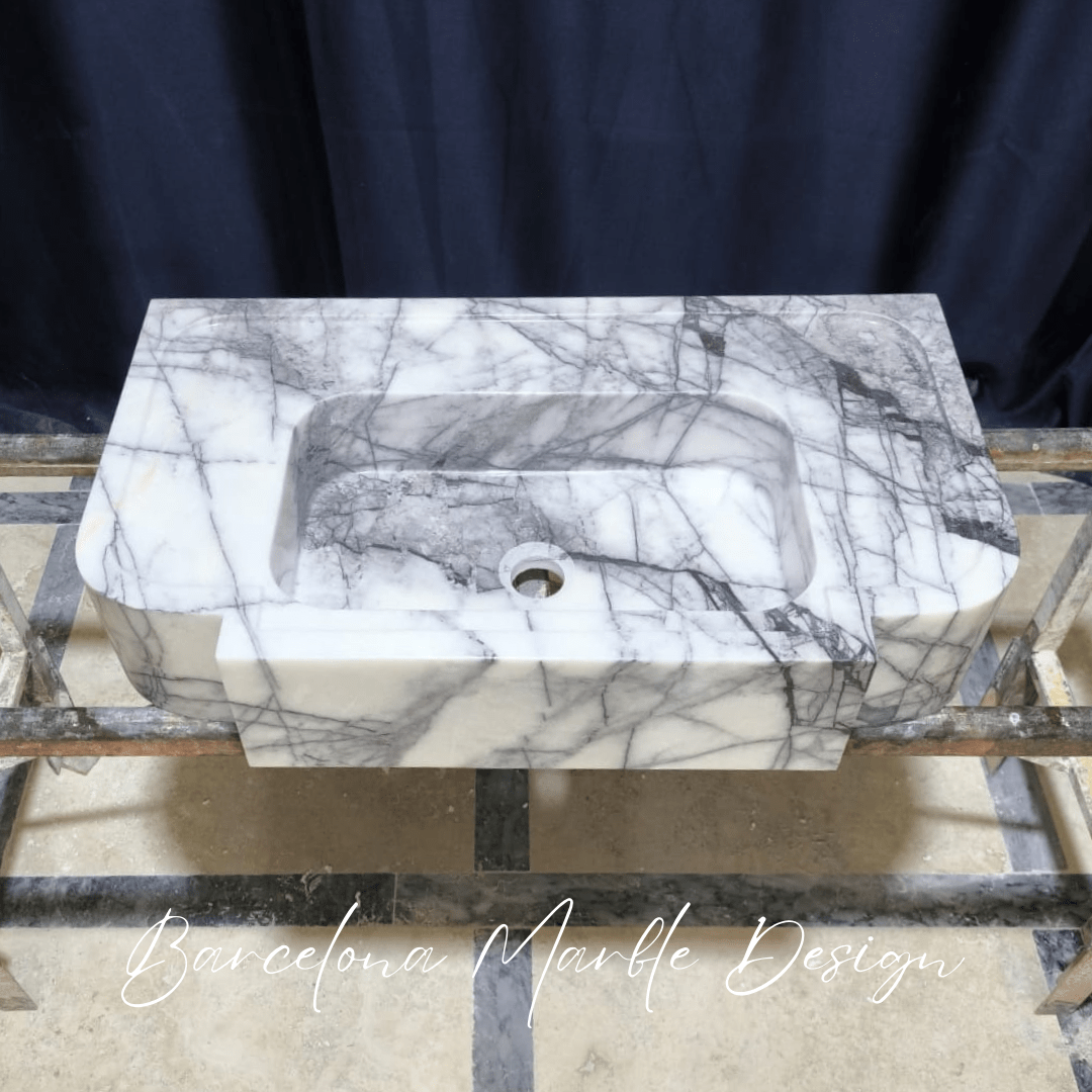 Modern Lilac Marble Sink – Handcrafted Wall-Mounted Natural Stone Basin