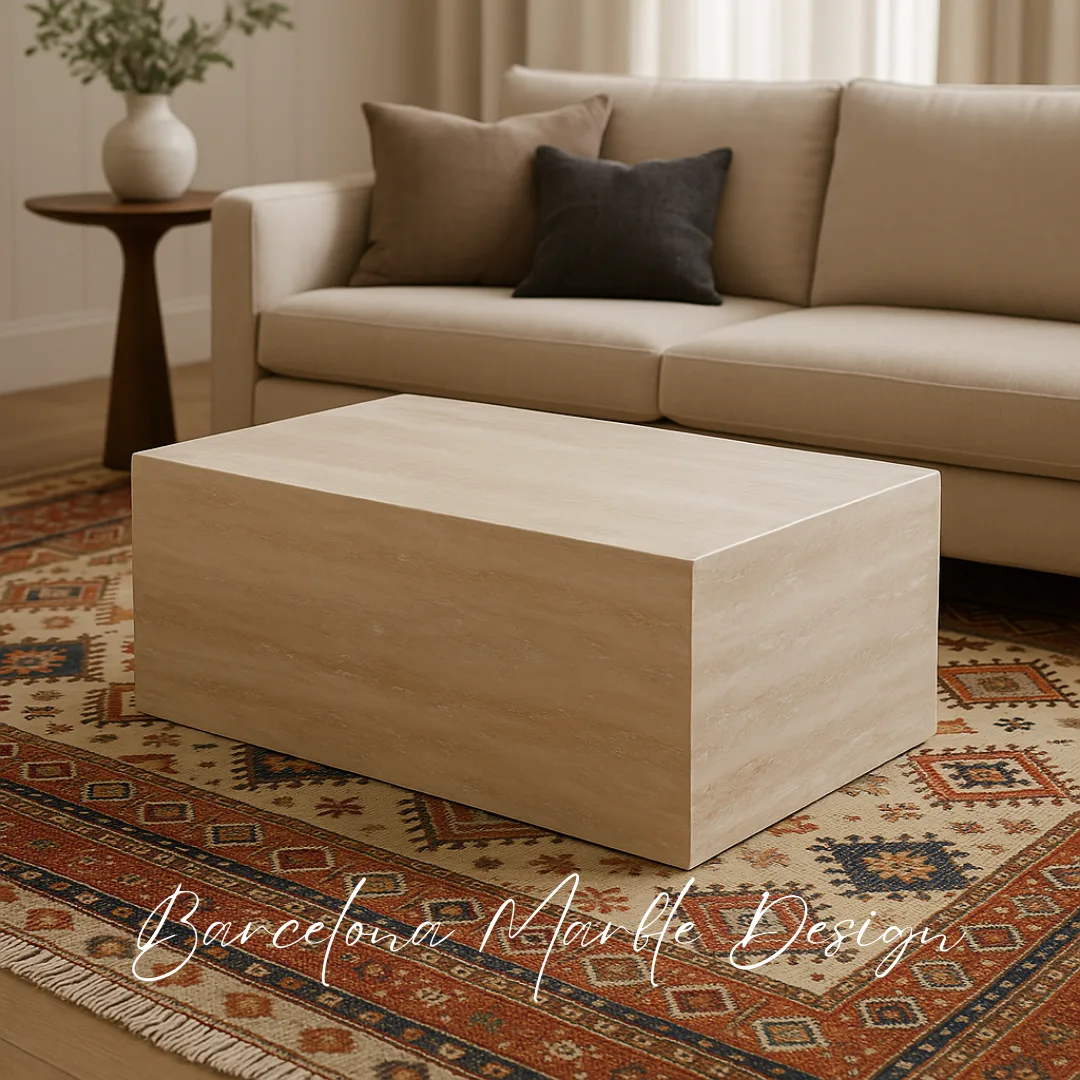 Rectangular Travertine Coffee Table – Modern Natural Stone Centerpiece