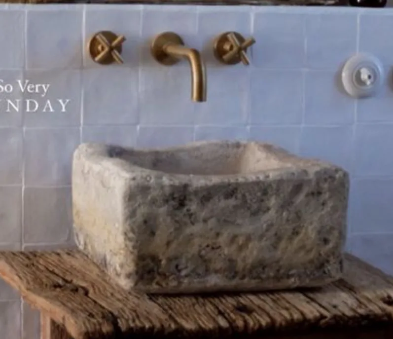 A small but striking Rough Silver Travertine Sink (40x20x18 cm), handcrafted with a rugged finish and ideal for minimalist or modern interiors.