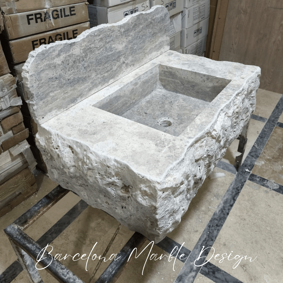 Upgrade your bathroom or powder room with the timeless charm of our Silver Travertine Sink, meticulously handcrafted from 100% natural travertine. Featuring a sleek integrated backsplash, this luxurious sink blends functionality with rustic sophistication, making it a stunning focal point in any space.
