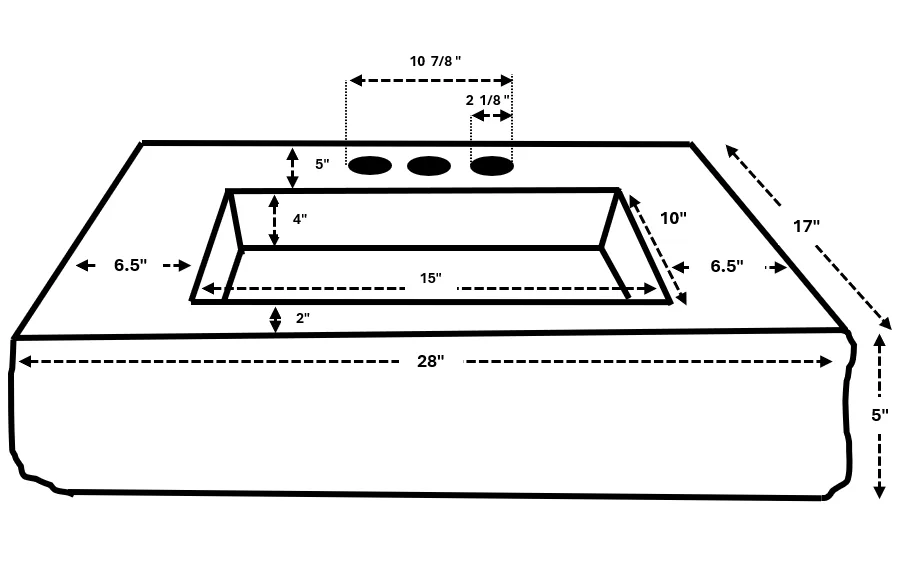 28″ x 17″ x H 5″ (71.12 x 43.2 x 12.7 cm)